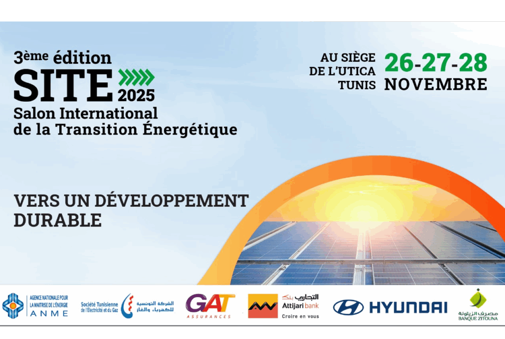 Organisation de la 3e édition du Salon International de la Transition Énergétique, qui aura lieu du 26 au 28 novembre 2025 au siège de l’Union Tunisienne de l’Industrie, du Commerce et de l’Artisanat (UTICA) à Tunis.